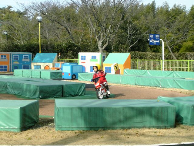 鈴鹿サーキットはご存知のようにモータースポーツのメッカということもあり所謂乗り物系のアトラクションが多いのですが、中でもカートとキッズバイクは鈴鹿ならではの最たるものでしょう。ツーリングバイクに乗るNちゃん